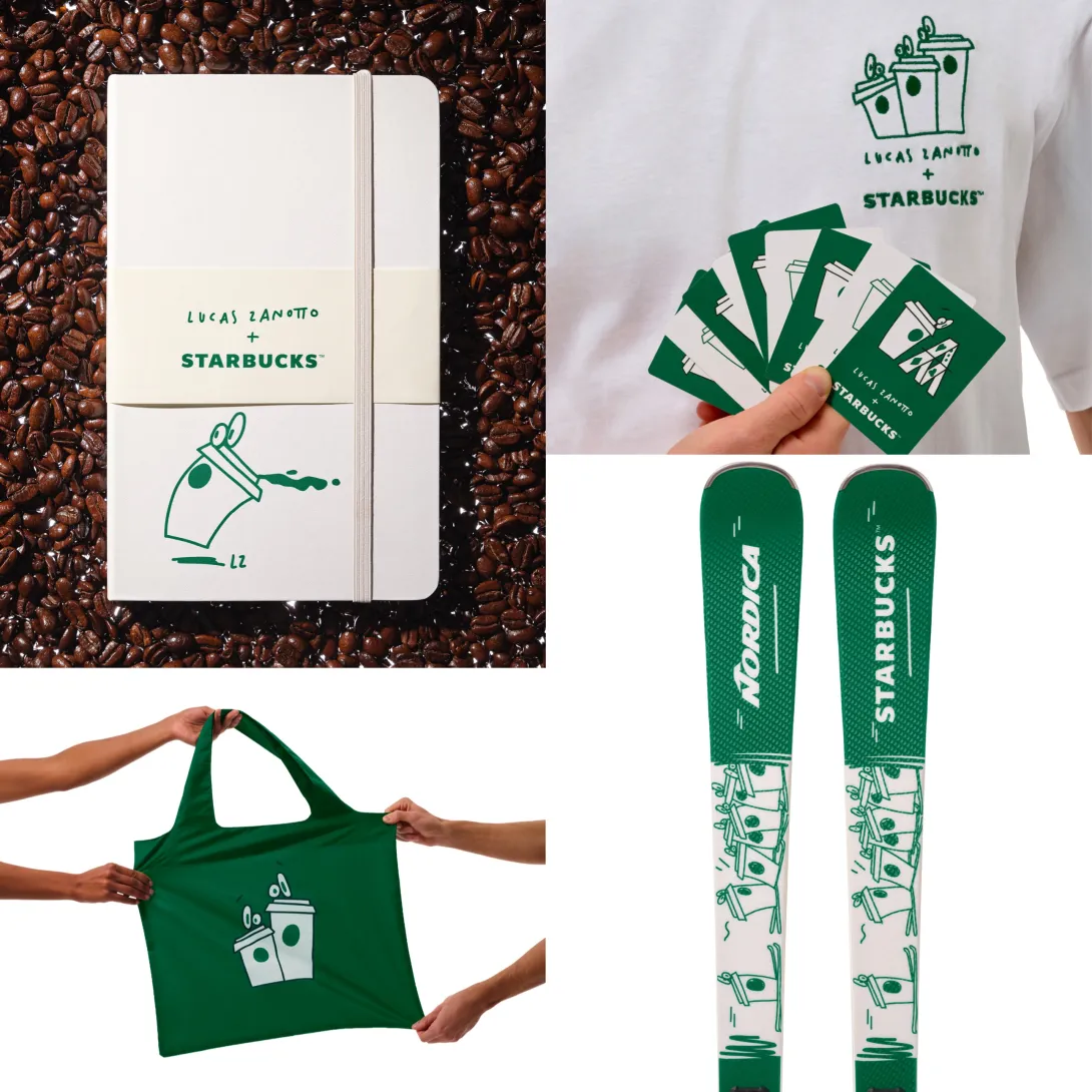 Il primo capitolo di The House of Coffee debutta a gennaio 2026 con tre collaborazioni speciali nate dalla sinergia creativa tra Sarah Andelman e l’artista italiano Lucas Zanotto, noto per il suo linguaggio visivo giocoso e immediatamente riconoscibile. Insieme, reinterpretano l’identità Starbucks attraverso design e funzionalità in una collezione in edizione limitata.