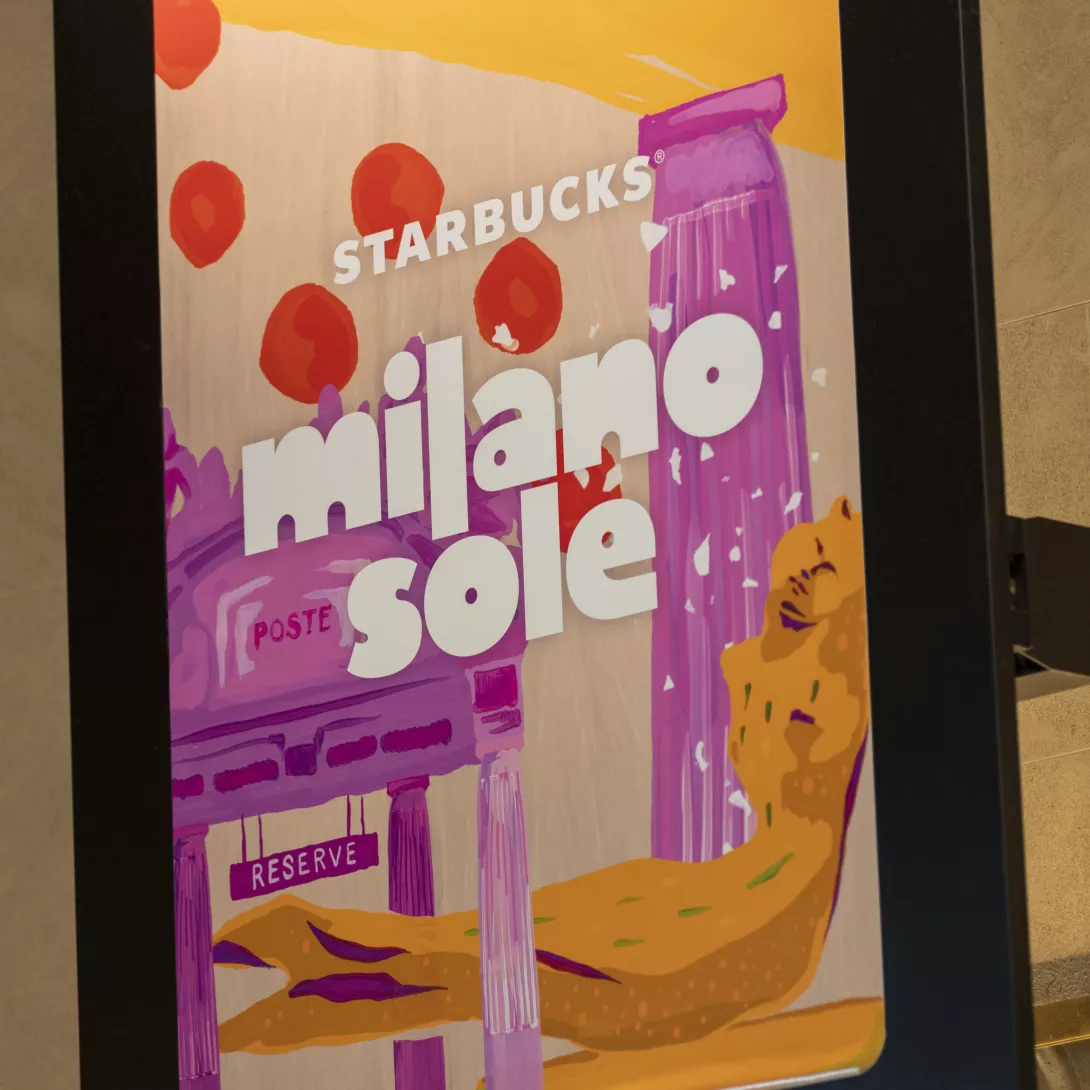 “We were encouraged to think about duality and contrast. Contrast creates clarity, so the design has great contrast to visually represent the two roasts and to highlight the story of the coffee. We also wanted to ensure the essence of Milan is felt in the coffee art design,” said Yumi Reid, a senior designer for Starbucks.